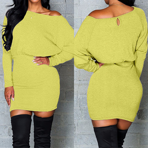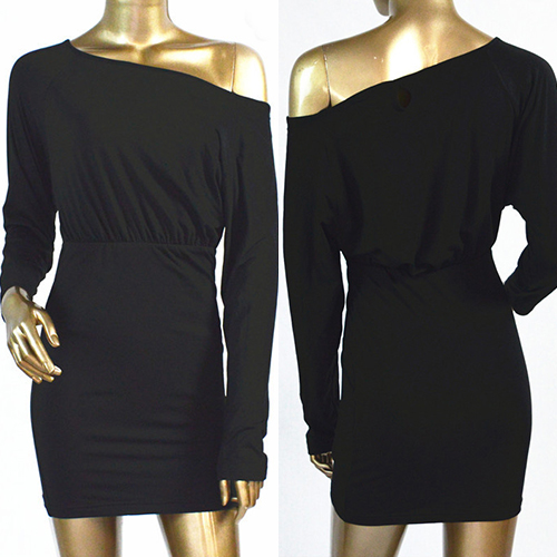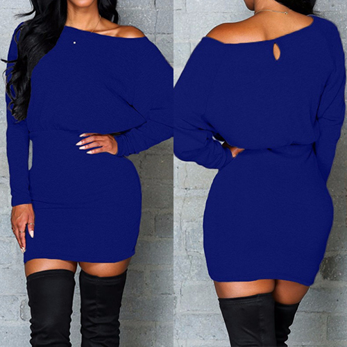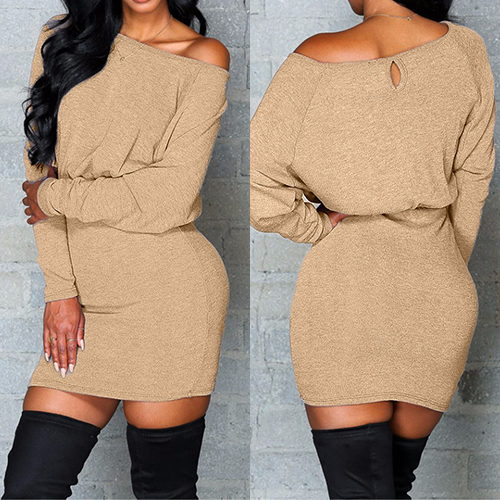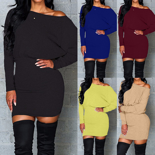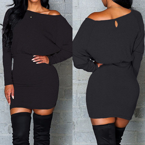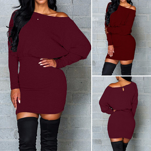 Embrace your sexy and chic autumn with this solid-coloured dress. Featuring oblique shoulder,