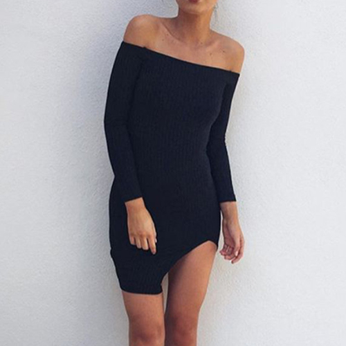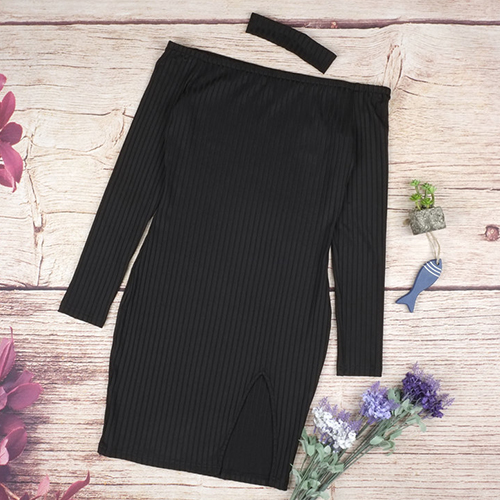 Show your elegant and start with this gorgeous and stylish dress. Solid color with long sleeve, off shoulder,
