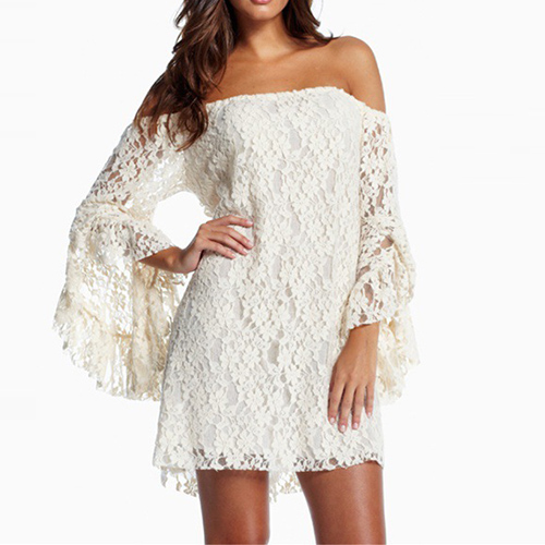 and romantic vibe into your look. Off shoulder design is completed with bell sleeve and relaxed