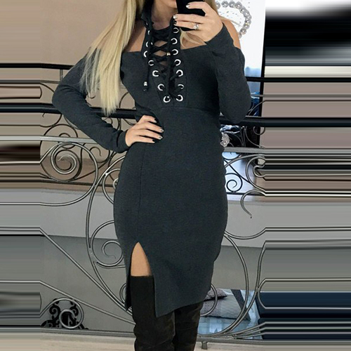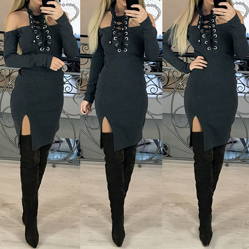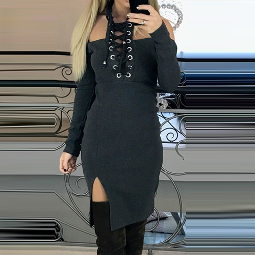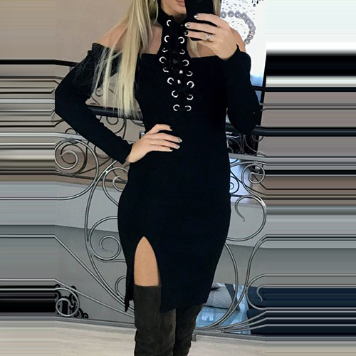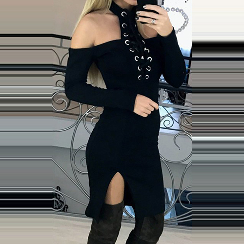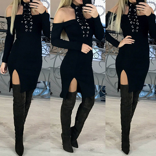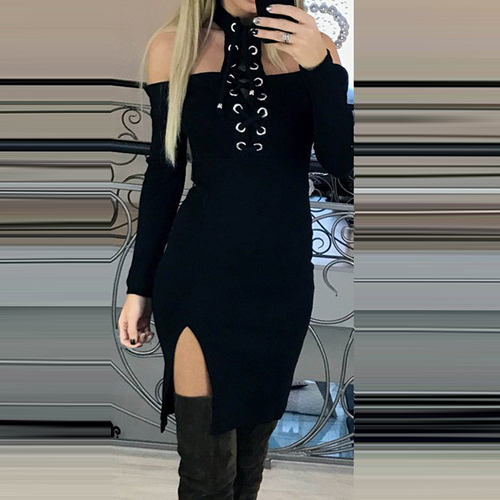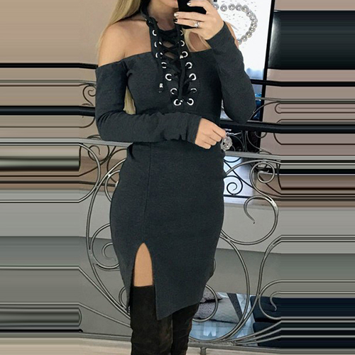 in front lace-up, off shoulder and slit hem designs. With a slim-fitting style, this halter dress better