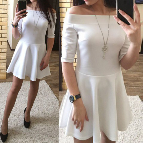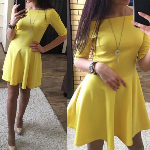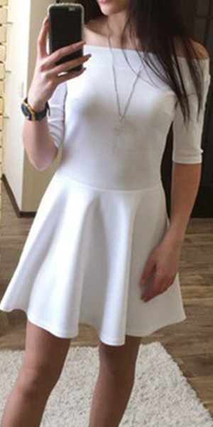 Off shoulder design is paired with half sleeve and gathered waist, giving it a minimalist and stylish style. Simple but