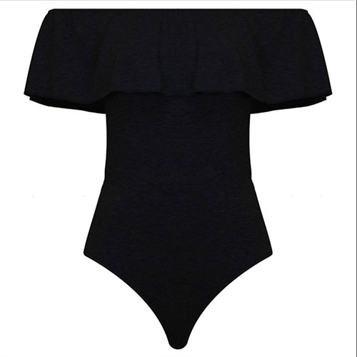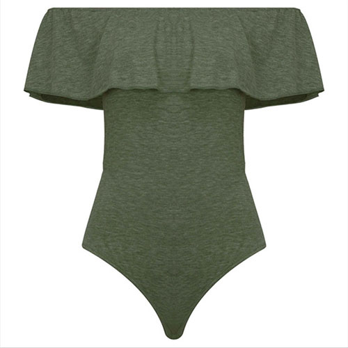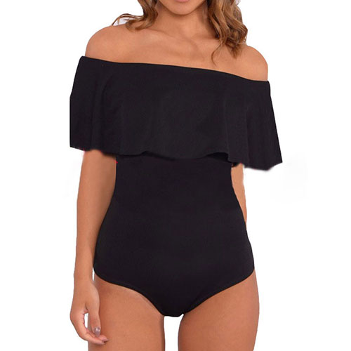 with off shoulder and ruffle, sexy and distinctive. Seaside scenery is also more beautiful