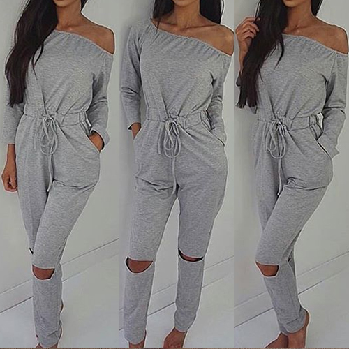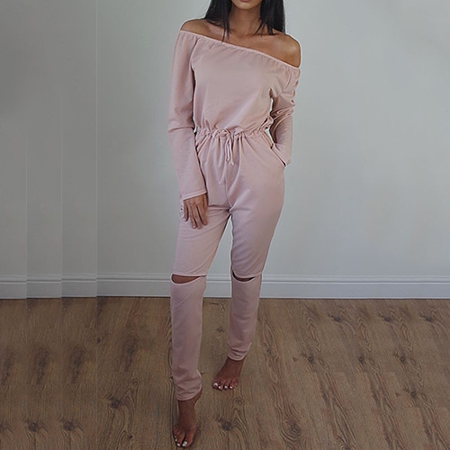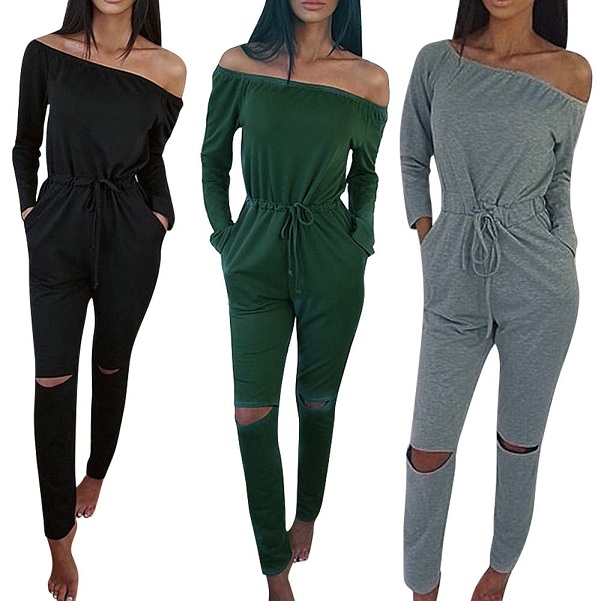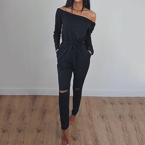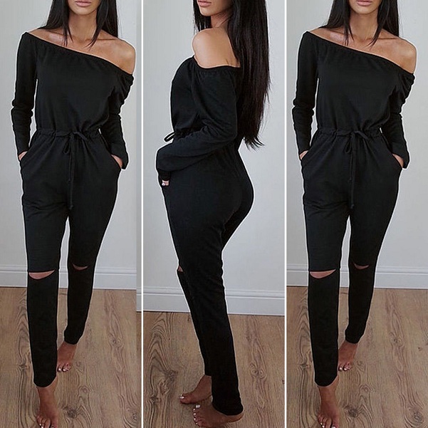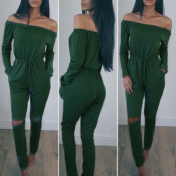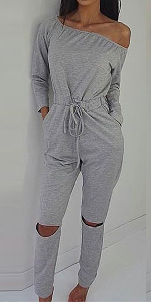 this jumpsuit. Off shoulder design can deliver your sheer femininity. Designed with long sleeve,