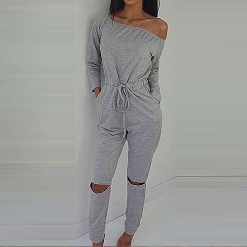 drawstring waist and ripped, this jumpsuit is perfect for you casual weekend or night walk.