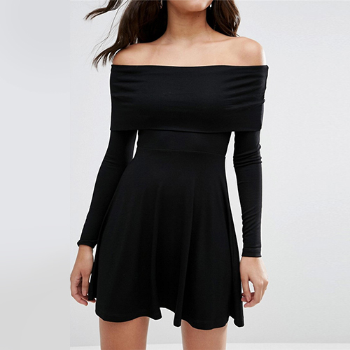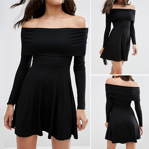 Very simple design, you can get a concise and fashion style with this dress. Off shoulder construction,