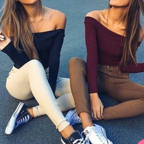Go ahead to enjoy your autumn season with this knit crop tops. It boasts off shoulder, long sleeve