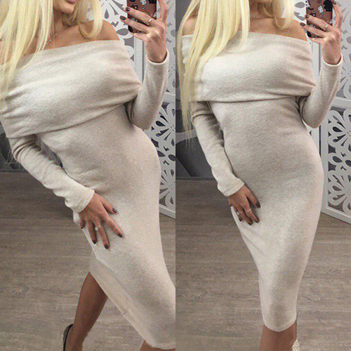 Solid color style, with off shoulder, long sleeve and slim fit design, your elegant and charming