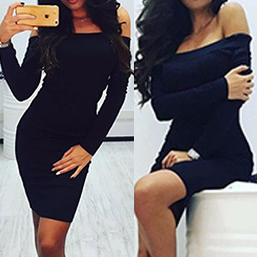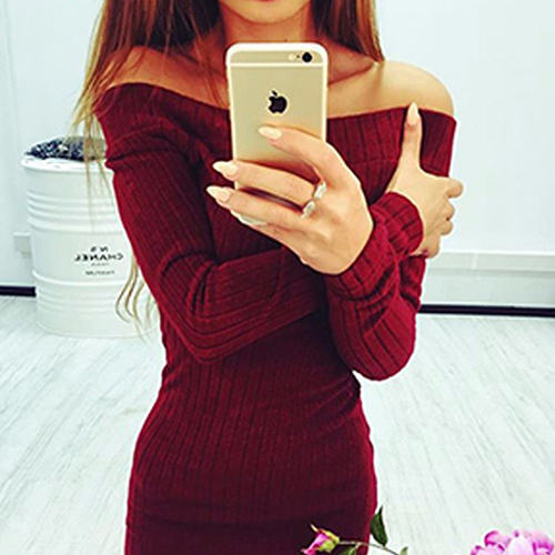 a slim-fitting silhouette, with long sleeve and off shoulder design, this dress perfect shows your charming