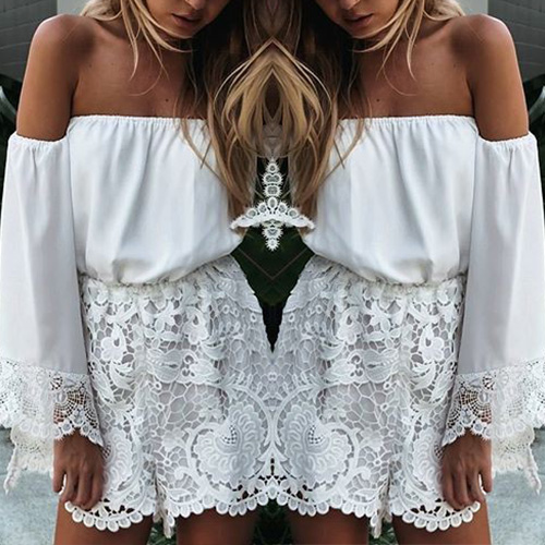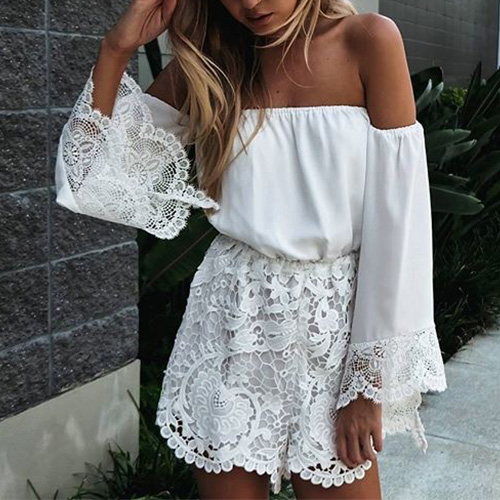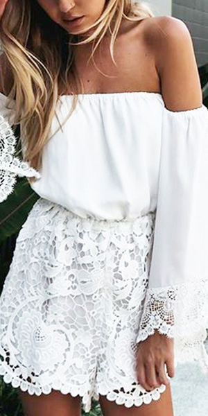 With classic and beautiful lace spliced design, solid color style, long sleeves and off shoulder make