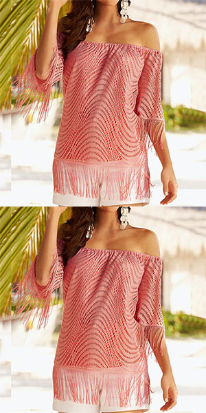Classic tassel design makes this tops more beautiful. Off shoulder and ripple design would let you