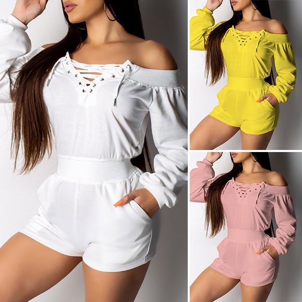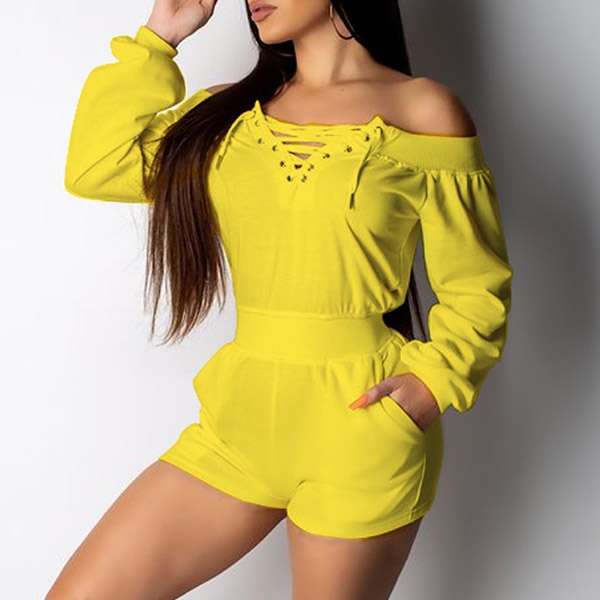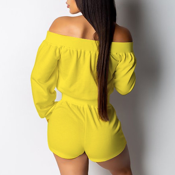 The chic and easy style of this solid color off-the-shoulder romper has you ready in no time. Constructed from