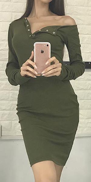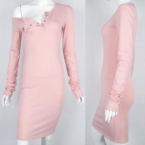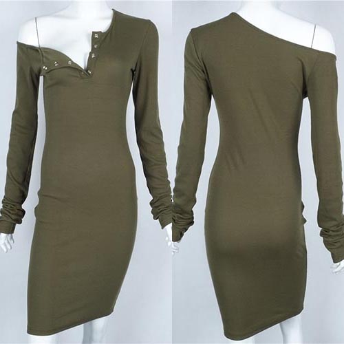 Let us introduce this dress for you. It boasts solid color, one shoulder and long sleeve design,