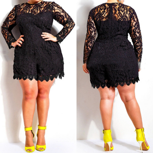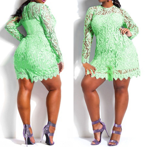 romper features round neck, long sleeve and lace hollow out design which can perfect shape