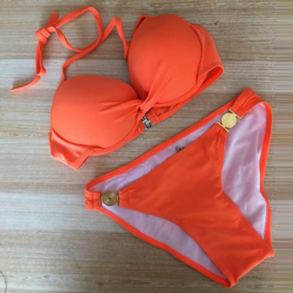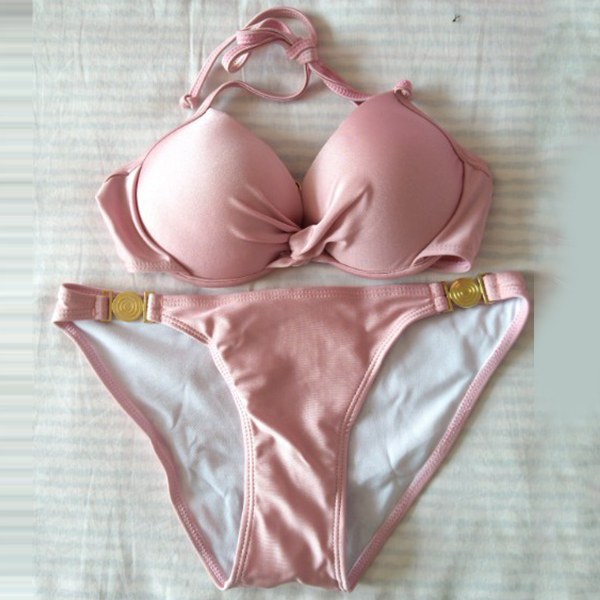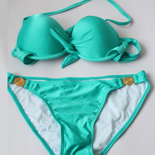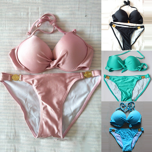 Get ready for the bikini season with this bikini set. Solid color style,it's cozy fabric and adjustable lace-up design