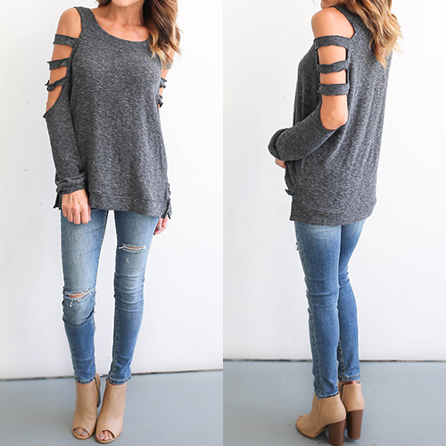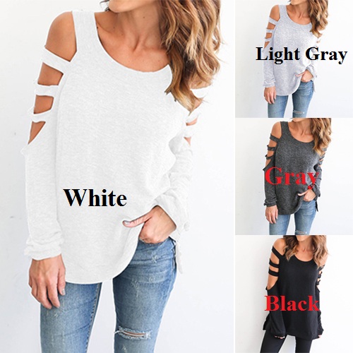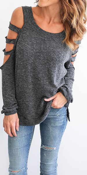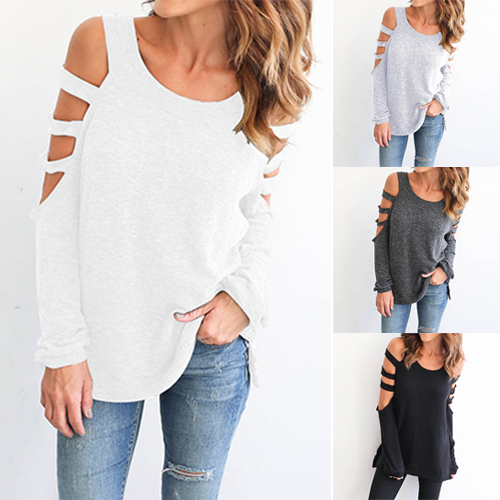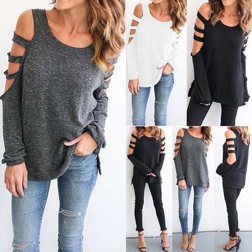 long sleeve and cold shoulder, this T-shirt is completed with hollow out style that perfect shows