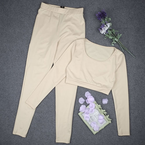Solid color style, this crop tops and pants set give people a casual and sexy feeling. It shows your