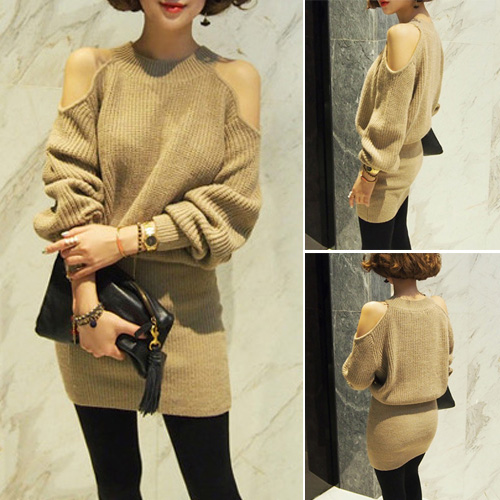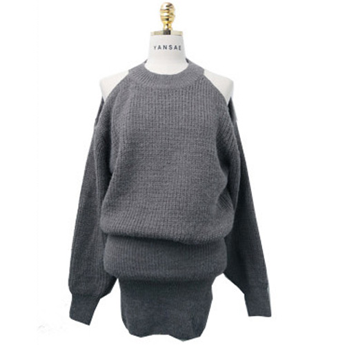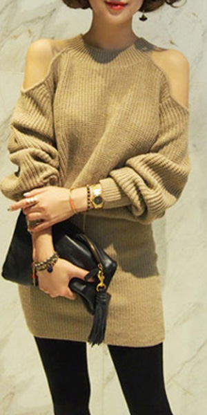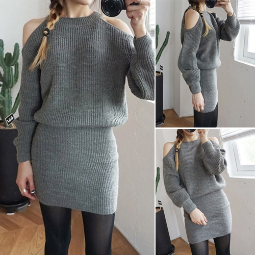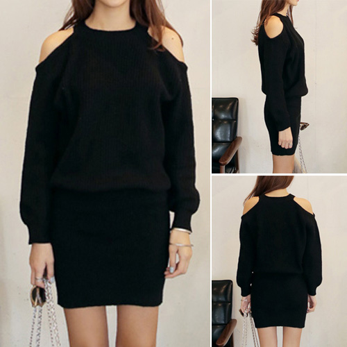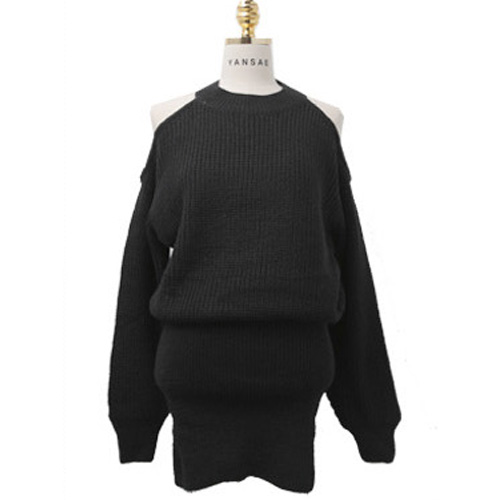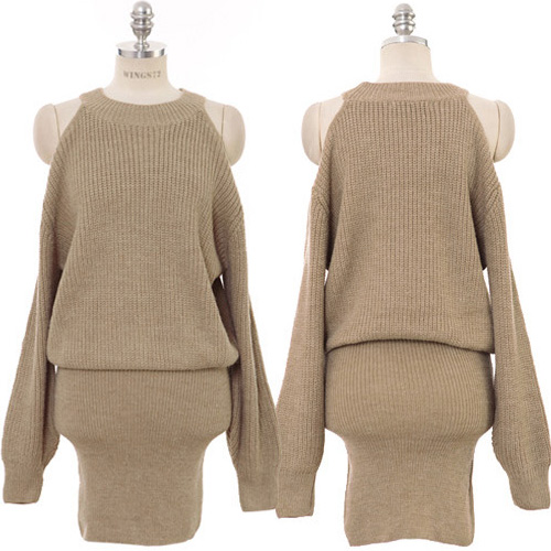 sweater dress. Solid color style, equipped with round neck, long sleeve and cold shoulder design,