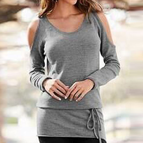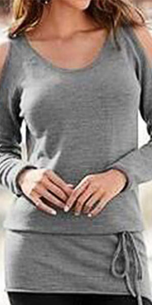 It is crafted from soft and cozy material, complemented with round neck, long sleeve and cold shoulder design,