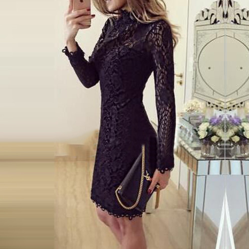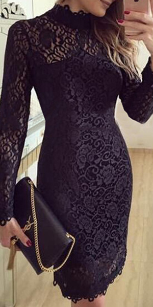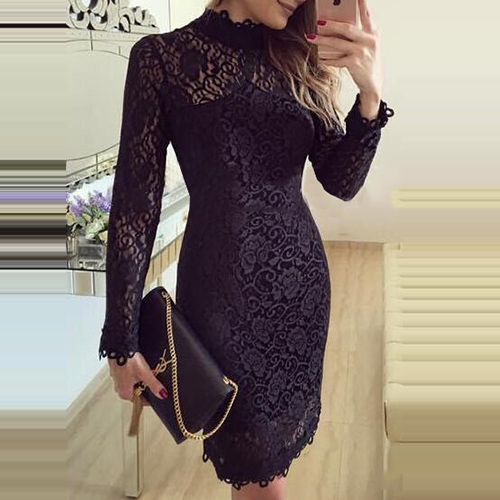 out style, designed with round neck, long sleeve and slim fit, this lace dress can let you stand