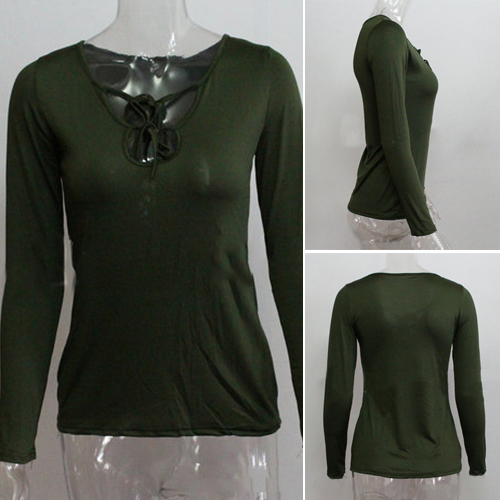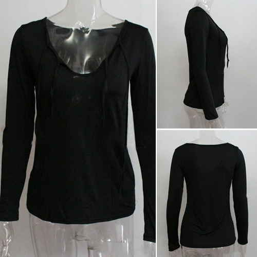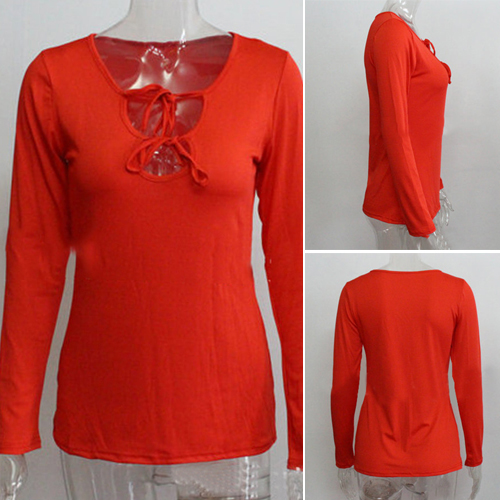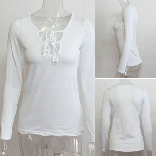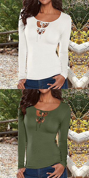 with round neck, long sleeve and solid color design, minimalist and sexy. Front lace-up and hollow