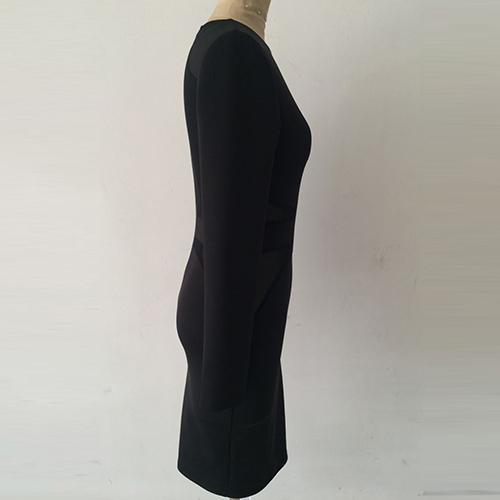 and curve. A black hue is accompanied with round neck, long sleeve and slim fit design, highlighting
