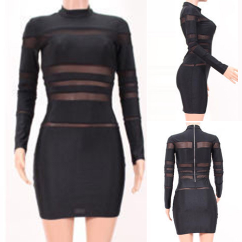 when you put on this dress. Solid color style, featuring round neck, long sleeve and see-through design,