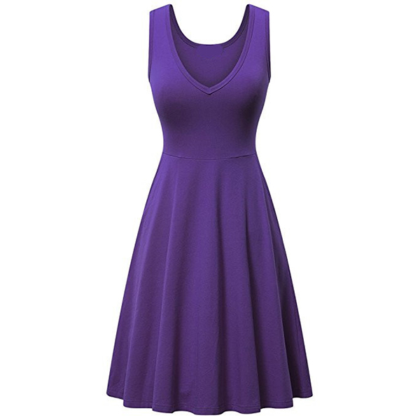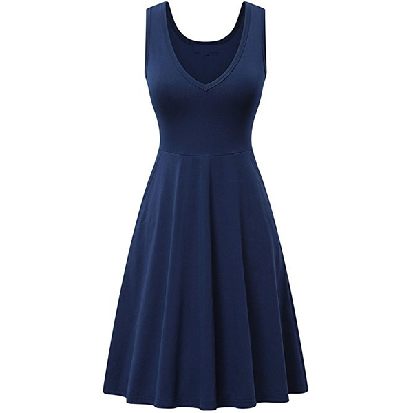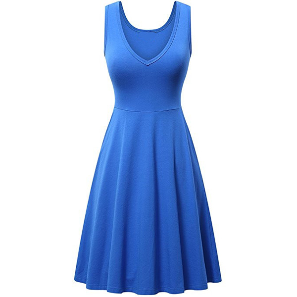 Simple design with sleeveless backless, this dress shows your feminine style completely.Gathered waist style with flowing hemline makes it more perfect. Wear it and go to the beach! Its royal blue makes beach scenery more beautiful.