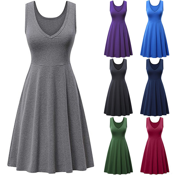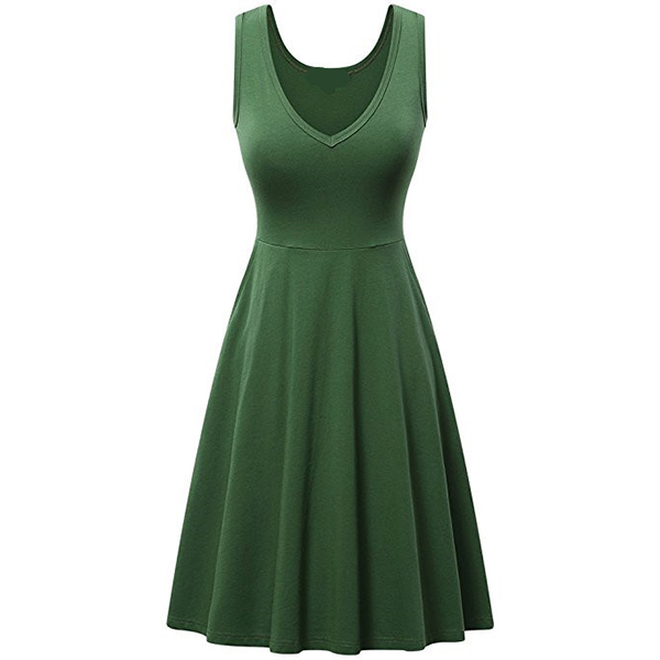 Sexy Solid Color Round Neck Sleeveless Backless Dress