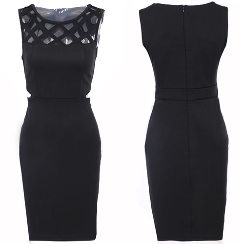 It features round neck, sleeveless and hollow out design, sexy with a bit demure flavor. No matter for