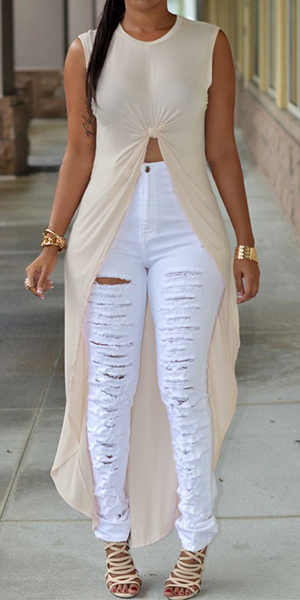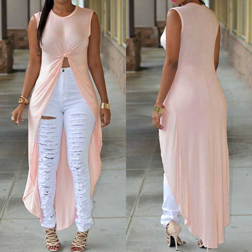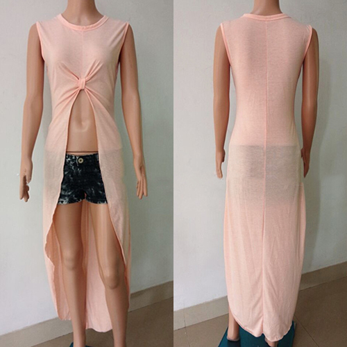 round neck, sleeveless and front knotted design, chic and sexy. Irregular hemline design makes it full