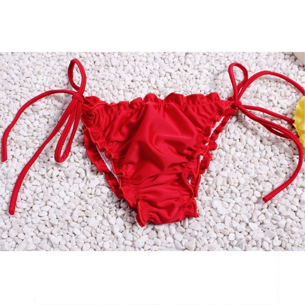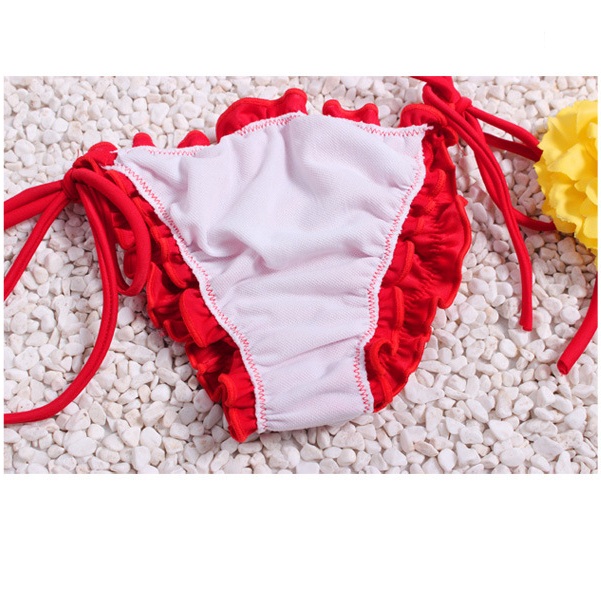Features a bright red tone,this bikini set makes it easier fro you to stand out on the beach. And its ruffle design makes it look
