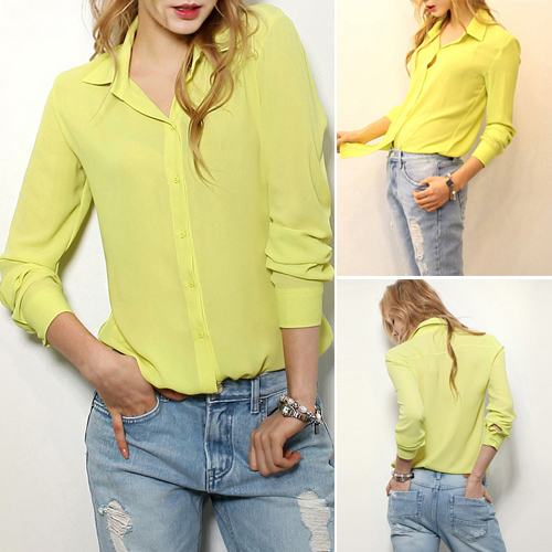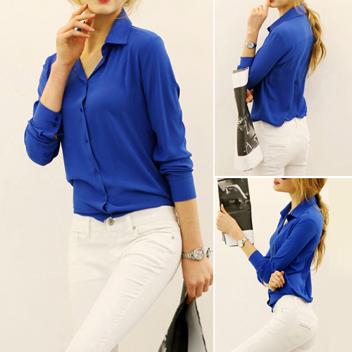One of the best ways to showcase your modern femininity is via this blouse. Concise and stylish style, with lapel,
