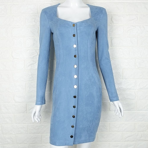 Complete your dainty and charming look with this dress. A low-cut construction is complemented with single-breasted,