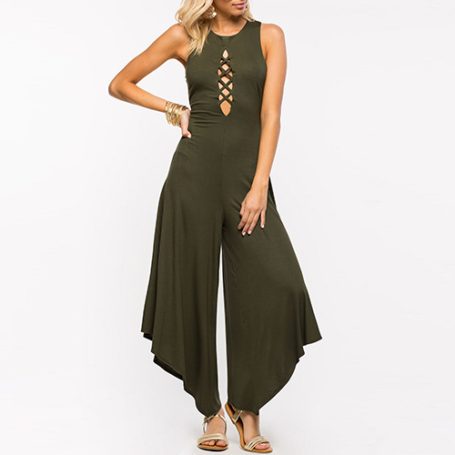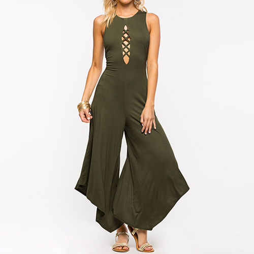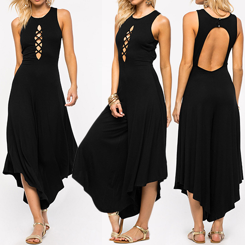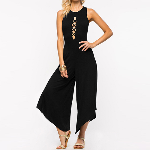 At this moment, you would be caught by this jumpsuit. Hollow out design, completed with backless,