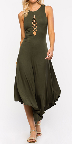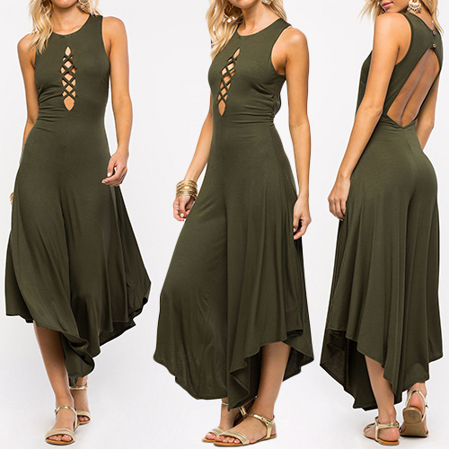 sleeveless and round neck, this piece can bring you a sexy and chic look. Besides, its irregular