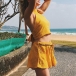 Sexy Solid Color Sleeveless Chop Hemline Top + Elastic Shorts Two-piece Set