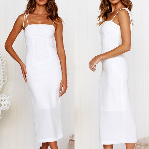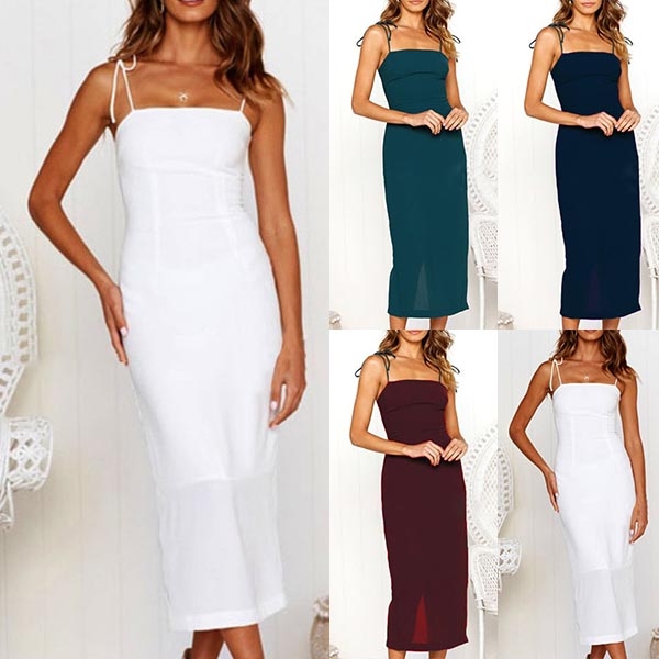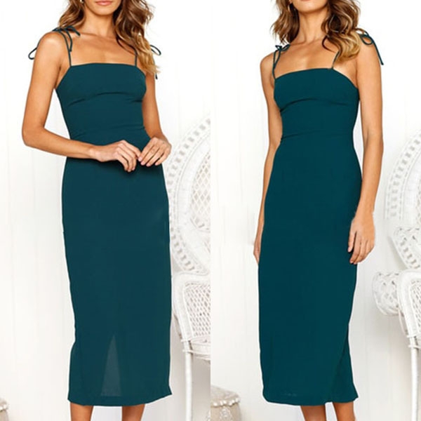 Sexy Solid Color Slit Hem Slim Fit Cami Dress