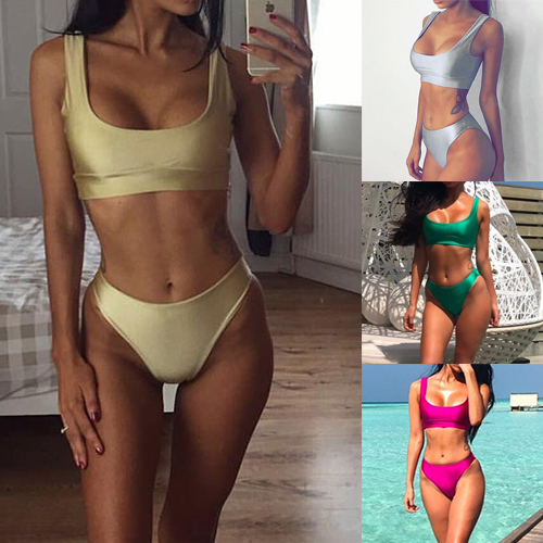 Solid color style,including a U-neck bikini top and a low-waist bikini briefs,this swimsuit set is an ideal choice for