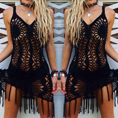 backless,v-neck and tassel hem,sexy and alluring. Perfect for matching with your sexy bikini set!
