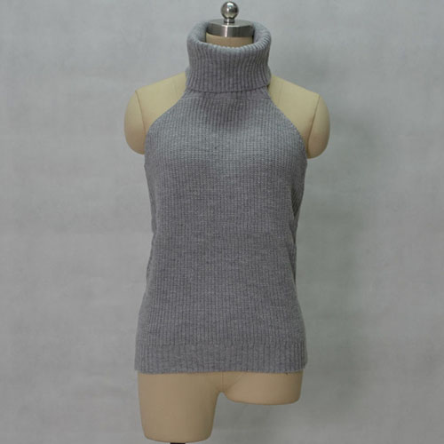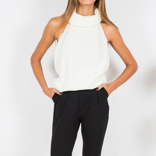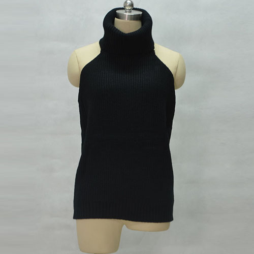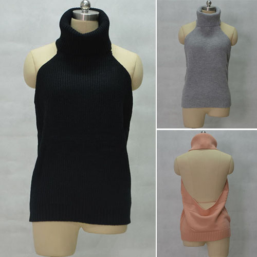 Sexy Solid Color Turtleneck Backless Sleeveless Halter Sweater