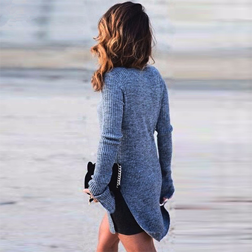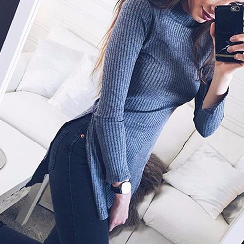 owning turtleneck, long sleeve and side slit design, complemented with a slim-fitting silhouette,