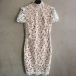 Turtleneck construction, accompanied with backless, short sleeve and hollow out design, this lace