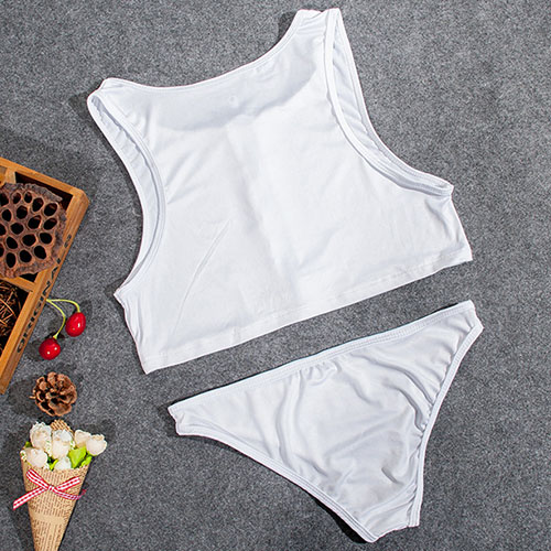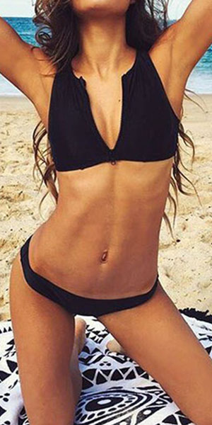 Solid color style,this two-piece swimsuit will definitely keep your spirits up.