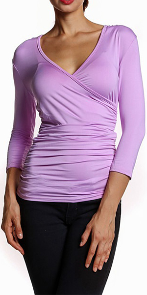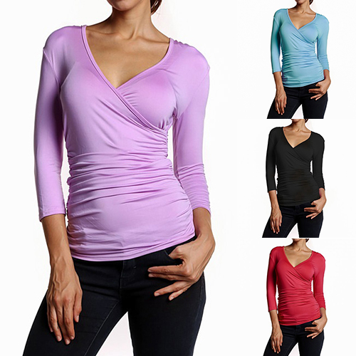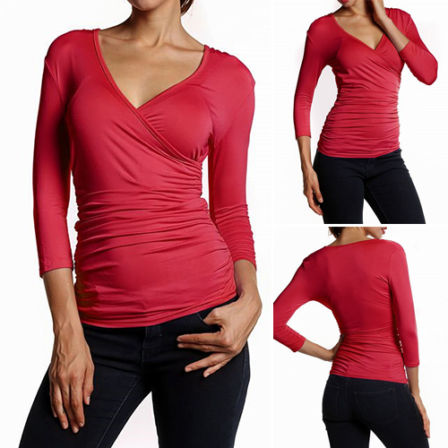 outfitted with v-neck, 3/4 sleeve and front crinkle design; this piece can create a sexy and