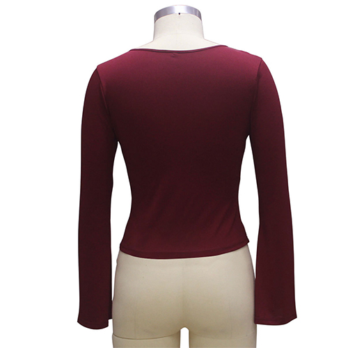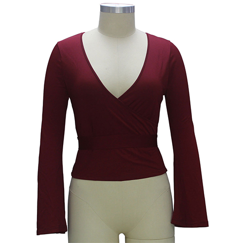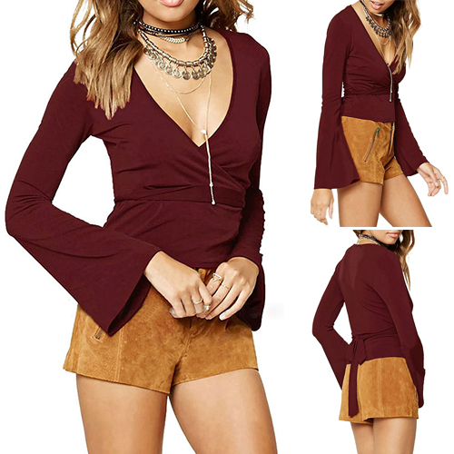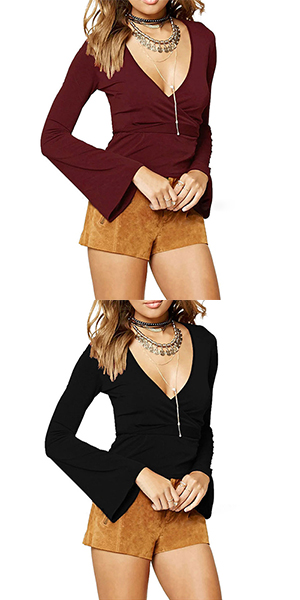 show off your curve. Solid color series, with v-neck, bell sleeve and gathered waist design, this piece