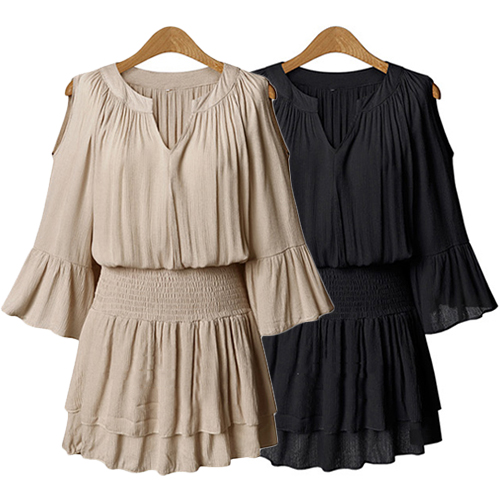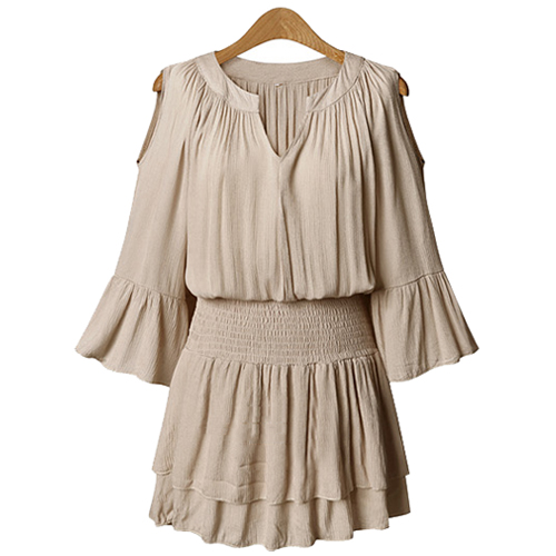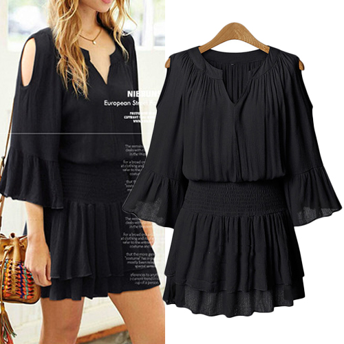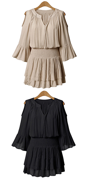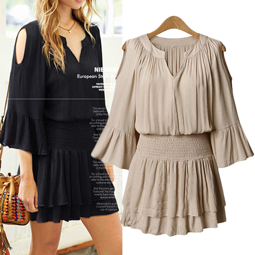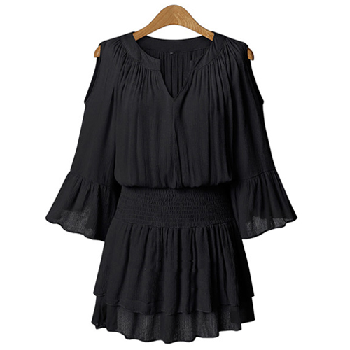 with v-neck, bell sleeve, cold shoulder and elastic waist design, this dress perfect describes your sexy