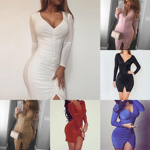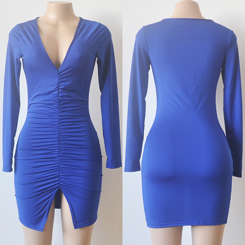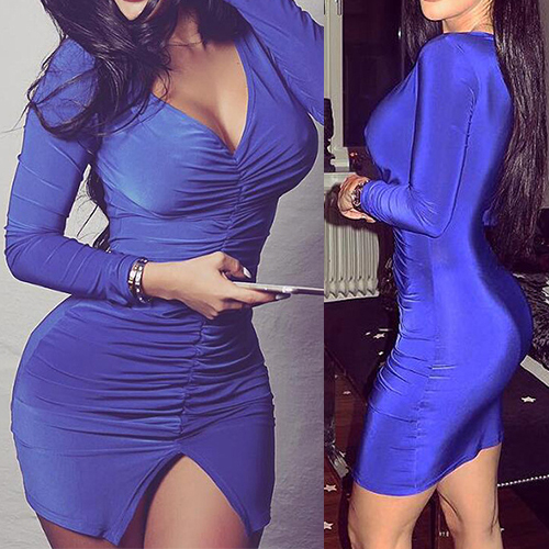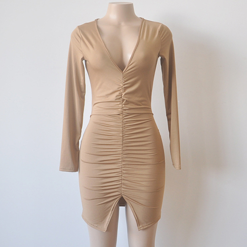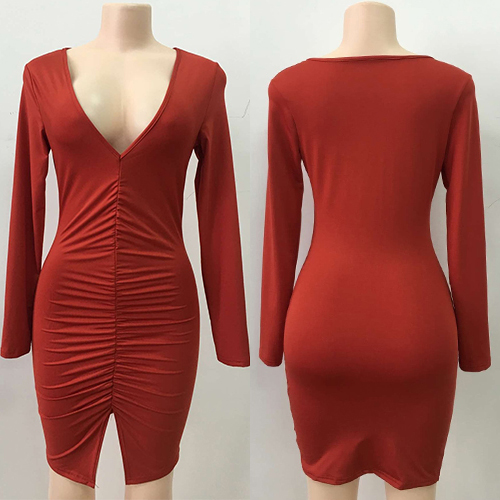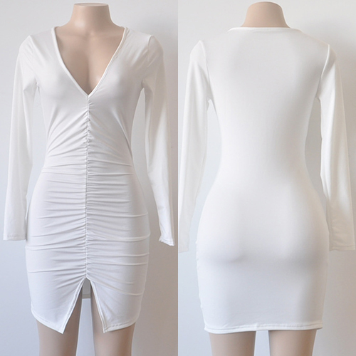 Reshape your sexy and charming image with this stunning dress. It boasts solid color, v-neck,