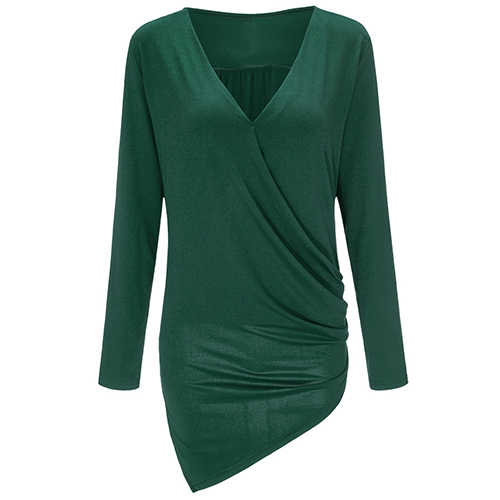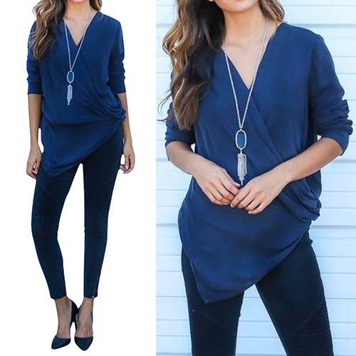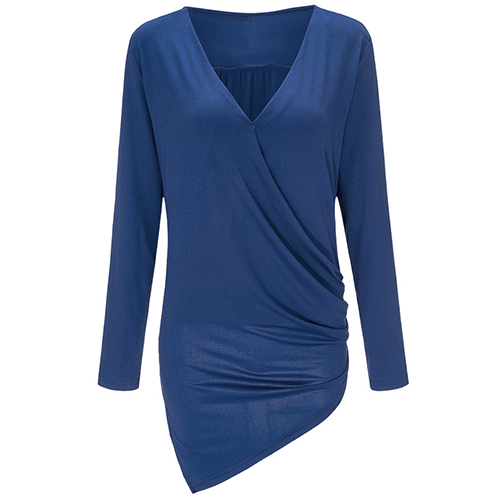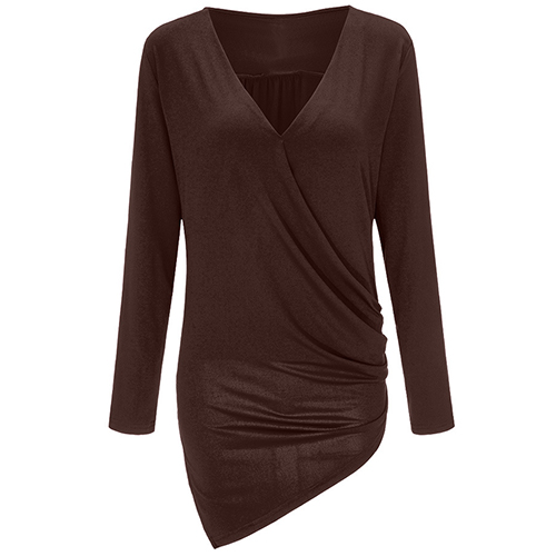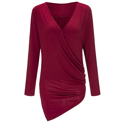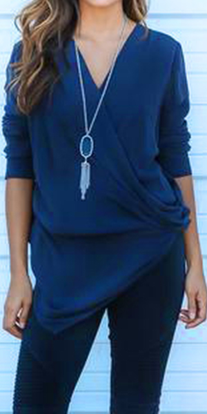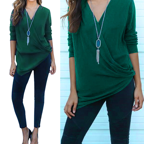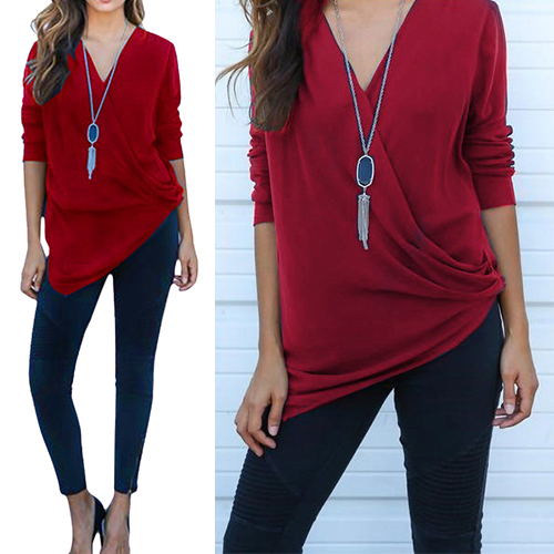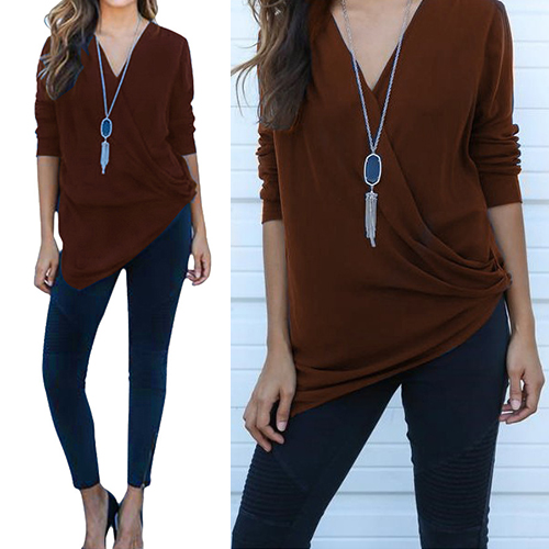 and soft material, with v-neck, long sleeve and irregular hemline design, this solid-colored piece can