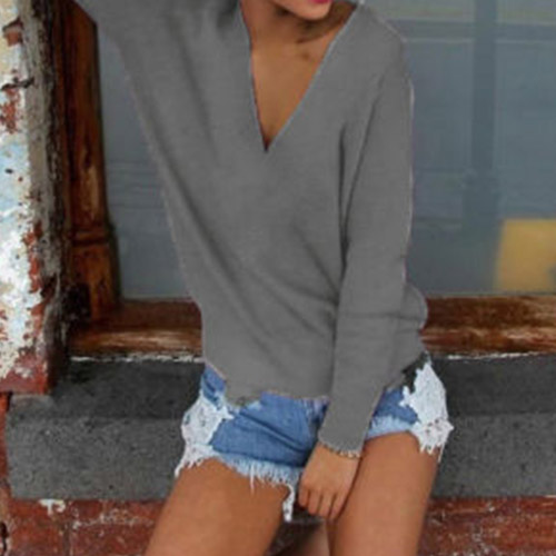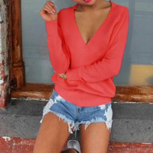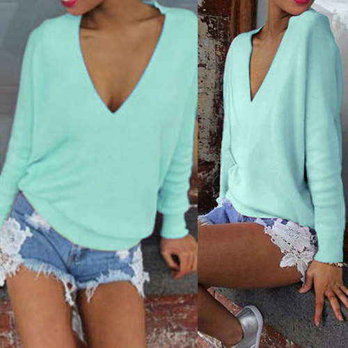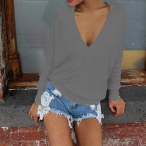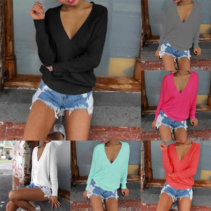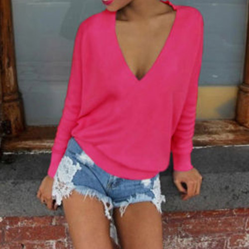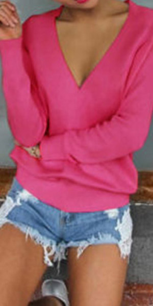 Solid color style, with long sleeve, v-neck and a loose silhouette design, filled with casual,