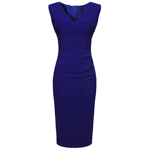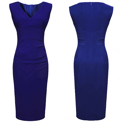 sleeveless design, this slim fit dress can perfect show your slender curve. Its navy blue color can bring you a